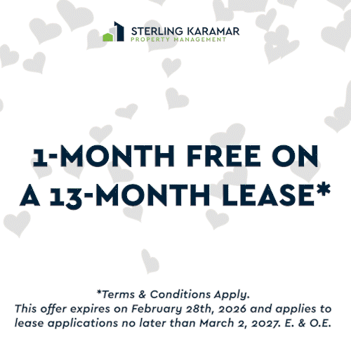 ** Sterling Karamar Property Management is committed to providing an exceptional leasing experience. We do not request a fee to book a tour or a deposit to reserve a suite.